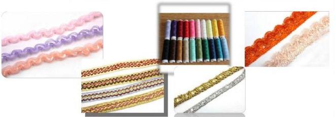 的品种有:绣花线、编结线、金银线。这些线类材料品种较多,呈现不同的颜色和特性。在用作服装材料时,应根据面料及其它辅料的配套要求进行选用。